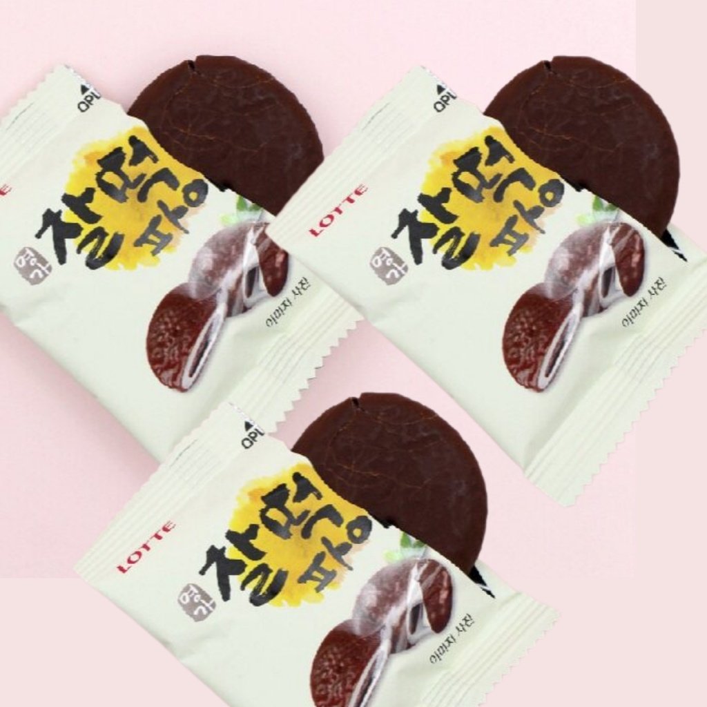 ขนมเกาหลี ขนมซัลต๊อกพาย ช็อกโก้พายสอดไส้ต๊อกเกาหลี Lotte choco sticky rice cake pie명가찰떡파이210g/350g.