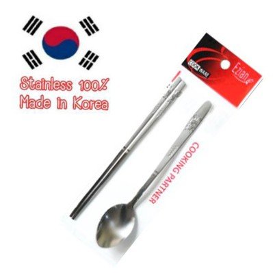 ชุดช้อน + ตะเกียบ เกาหลี ทำจากสแตนเลสอย่างดี ไม่เป็นสนิม ใช้ได้กับทั้งอาหารร้อนและเย็นสินค้า นำเข้าจากเกาหลี